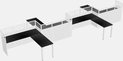 Postes De Travail En L Noirs Pour 4 Personnes - Formation En Zigzag + Retour De Panneau