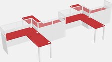 Postes De Travail En L Prism Red Pour 4 Personnes - Formation En Zigzag + Retour De Panneau
