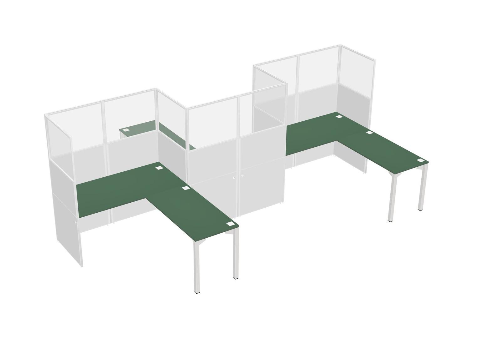 Postes De Travail En L Verts Pour 3 Personnes - Formation En Zigzag + Retour De Panneau