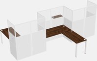 Postes De Travail En L En Noyer Columbia Pour 3 Personnes - Formation En Zigzag + Retour De Panneau