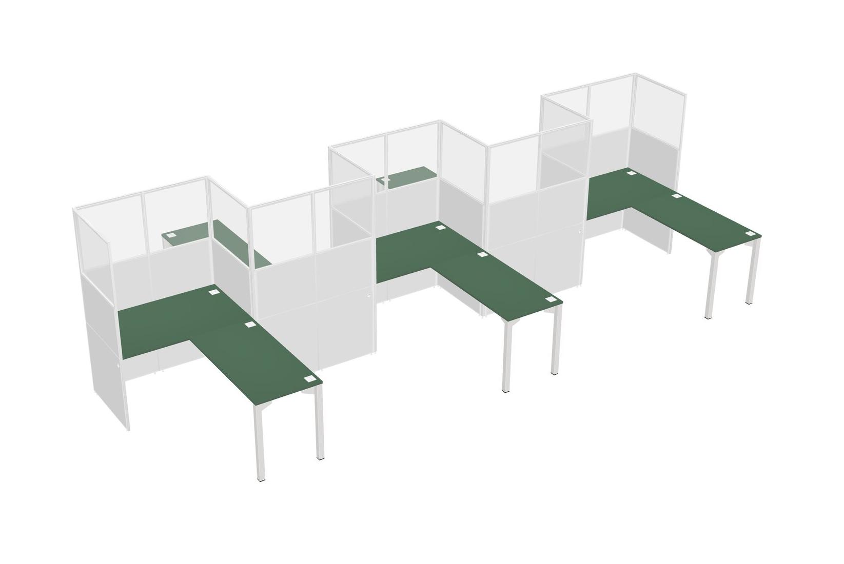 Postes De Travail En L Verts Pour 5 Personnes - Formation En Zigzag + Retour De Panneau