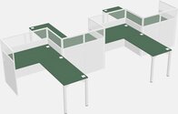 Postes De Travail En L Verts Pour 4 Personnes - Formation En Zigzag + Retour De Panneau