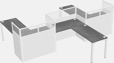 Postes De Travail En L Gris Pour 3 Personnes - Formation En Zigzag + Retour De Panneau