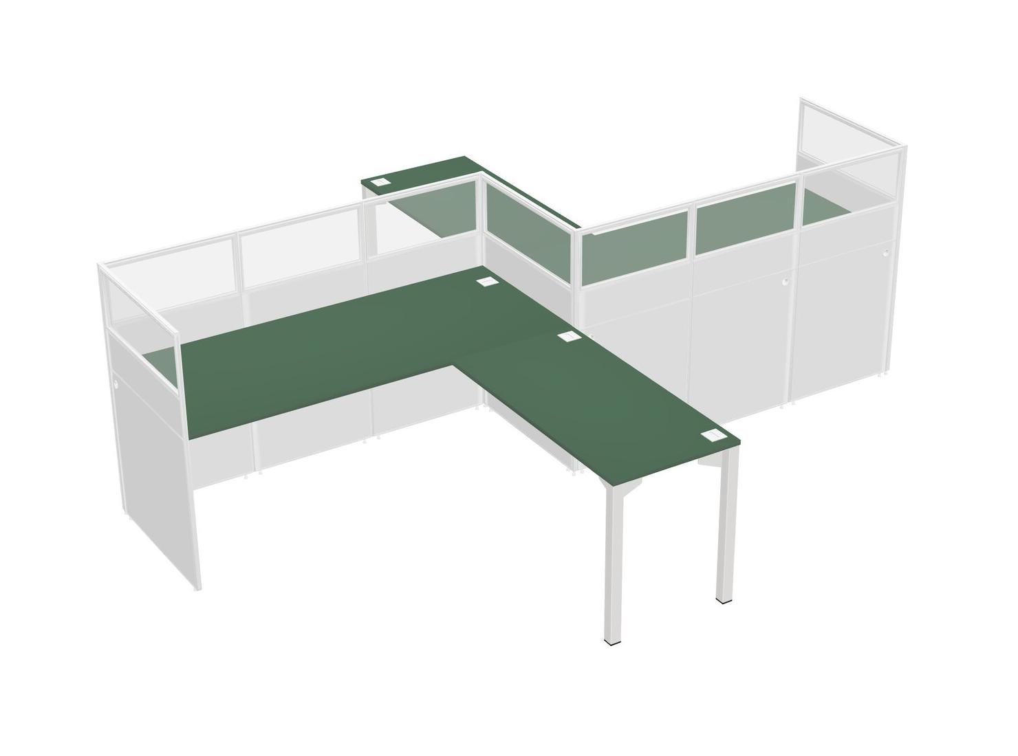 Postes De Travail En L Verts Pour 2 Personnes - Formation En Zigzag + Retour De Panneau