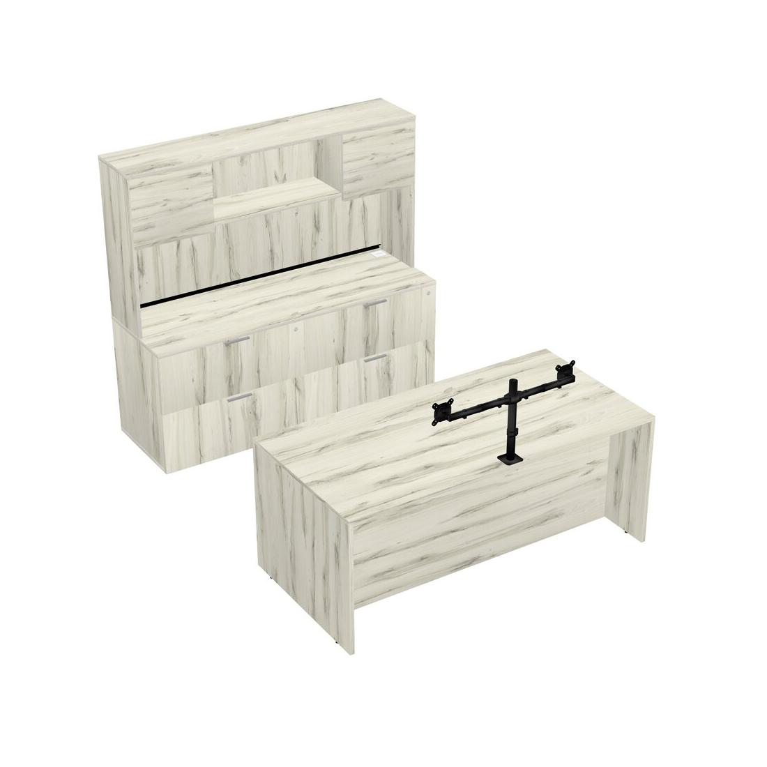 Bureau Parallèle Heinne Holz Avec Classeur Latéral, Tiroirs Mobiles En Bois, Clapier Et Bras D'écran (bras Doubles)