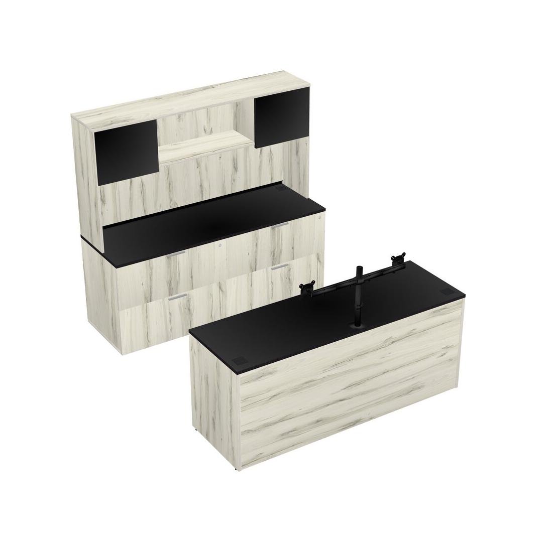 Bureau Parallèle Noir Avec Classeur Latéral, Tiroirs Mobiles En Bois, Clapier Et Bras D'écran (bras Doubles)