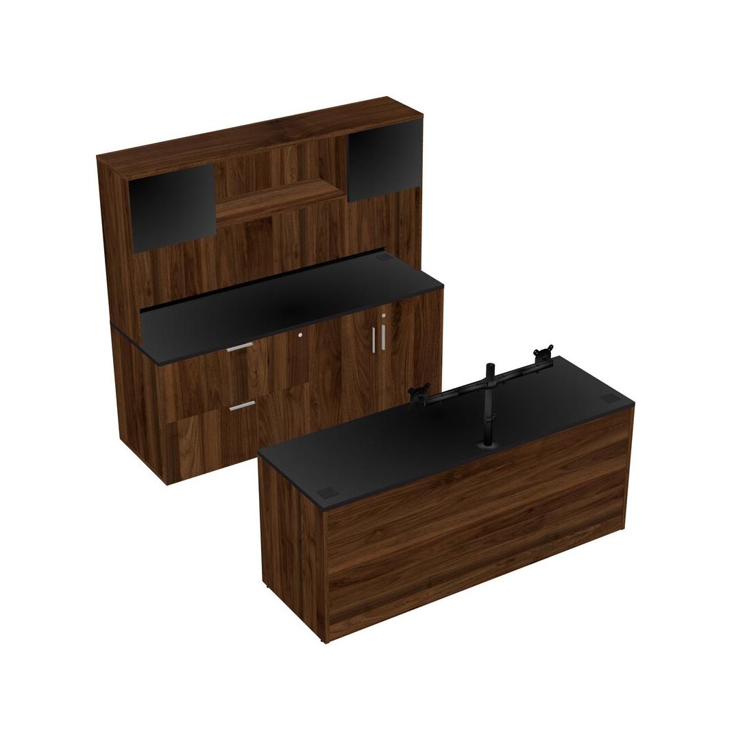Bureau Parallèle Noir Avec Rangement Latéral Combiné + Tiroirs Mobiles En Bois + Clapier + Bras D'écran (bras Doubles)