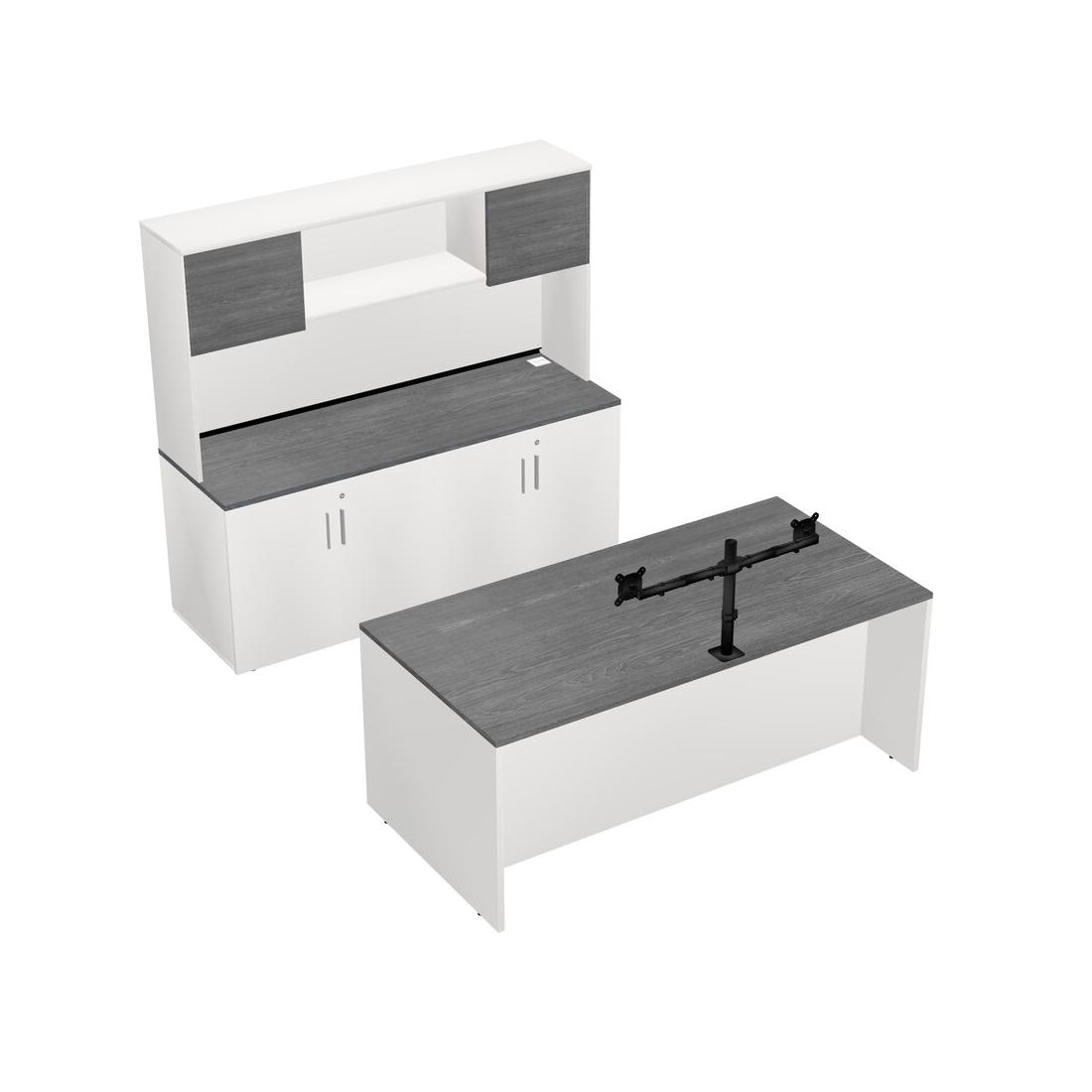 Bureau Parallèle Gris Avec Armoire De Rangement, Clapier Et Bras Pour écran (bras Doubles)