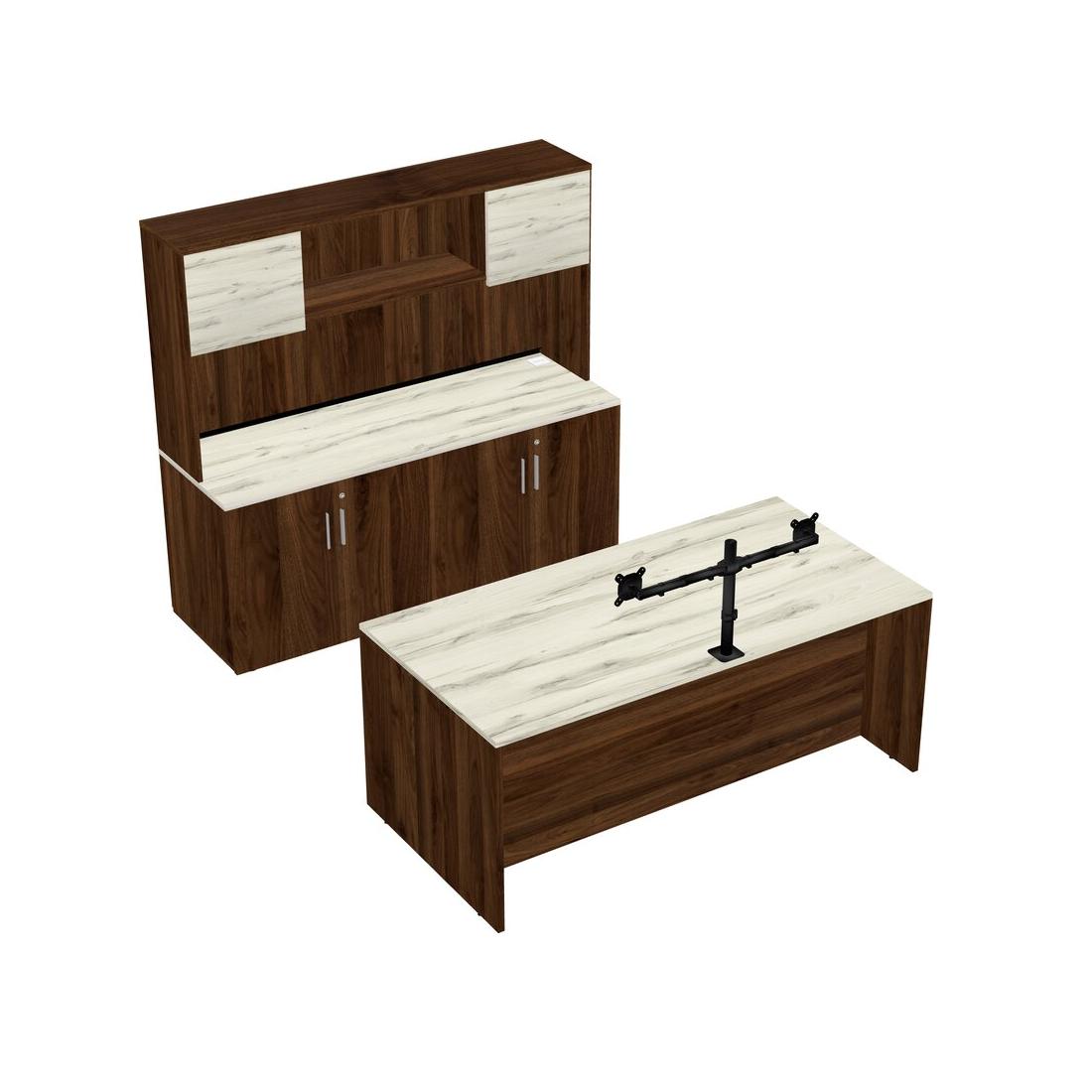Bureau Parallèle Heinne Holz Avec Armoire De Rangement, Clapier Et Bras D'écran (bras Doubles)