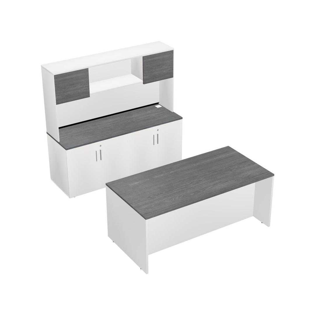 Bureau Parallèle Gris Avec Armoire De Rangement, Tiroirs Mobiles En Bois Et Clapier