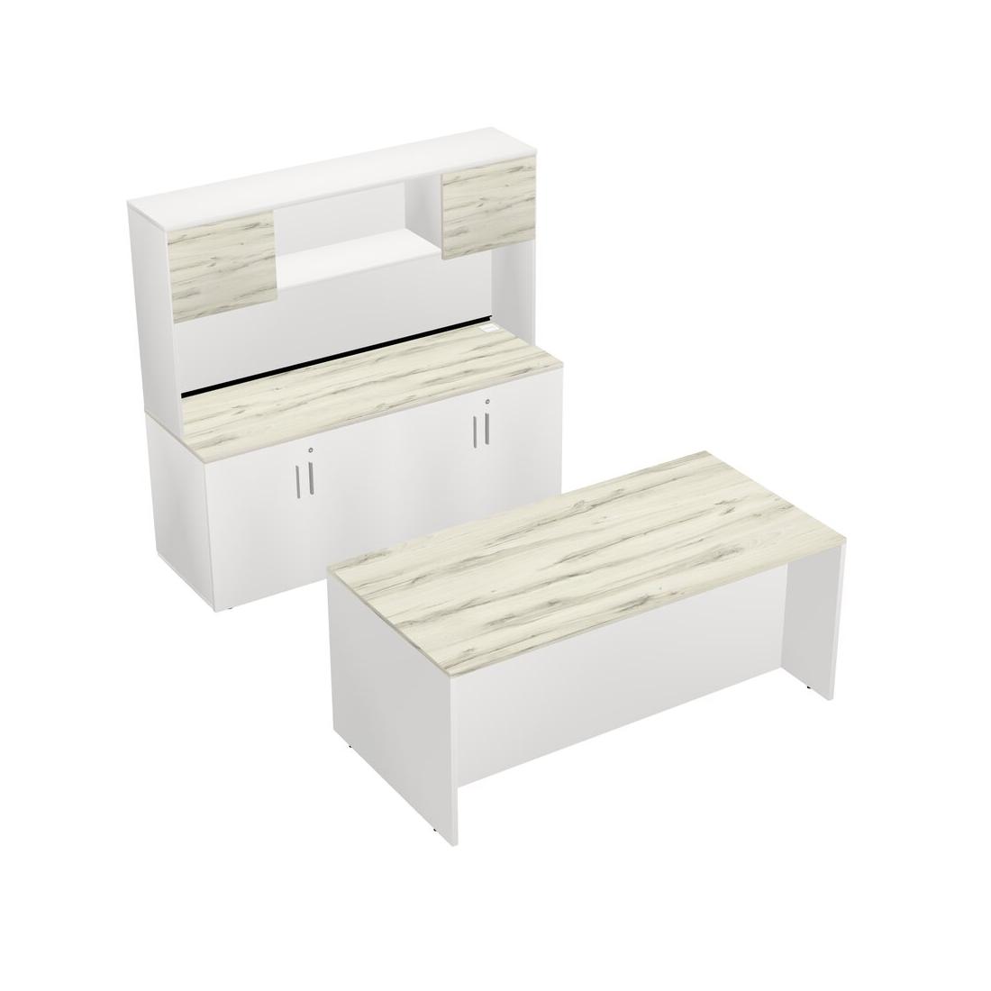 Bureau Parallèle Heinne Holz Avec Armoire De Rangement, Tiroirs Mobiles En Bois Et Clapier