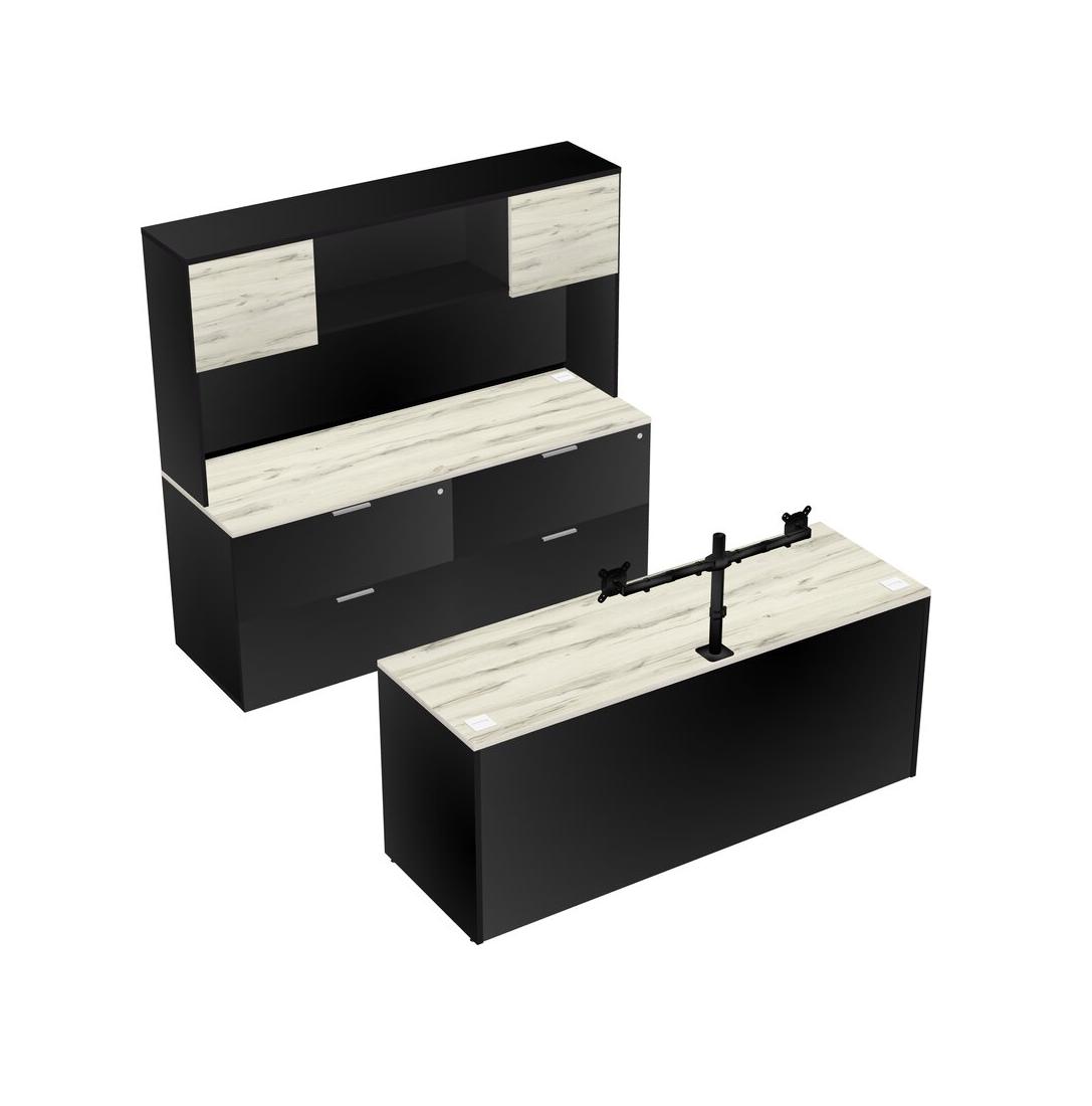 Bureau Parallèle Heinne Holz Avec Classeur Latéral, Clapier Et Bras D'écran (bras Doubles)