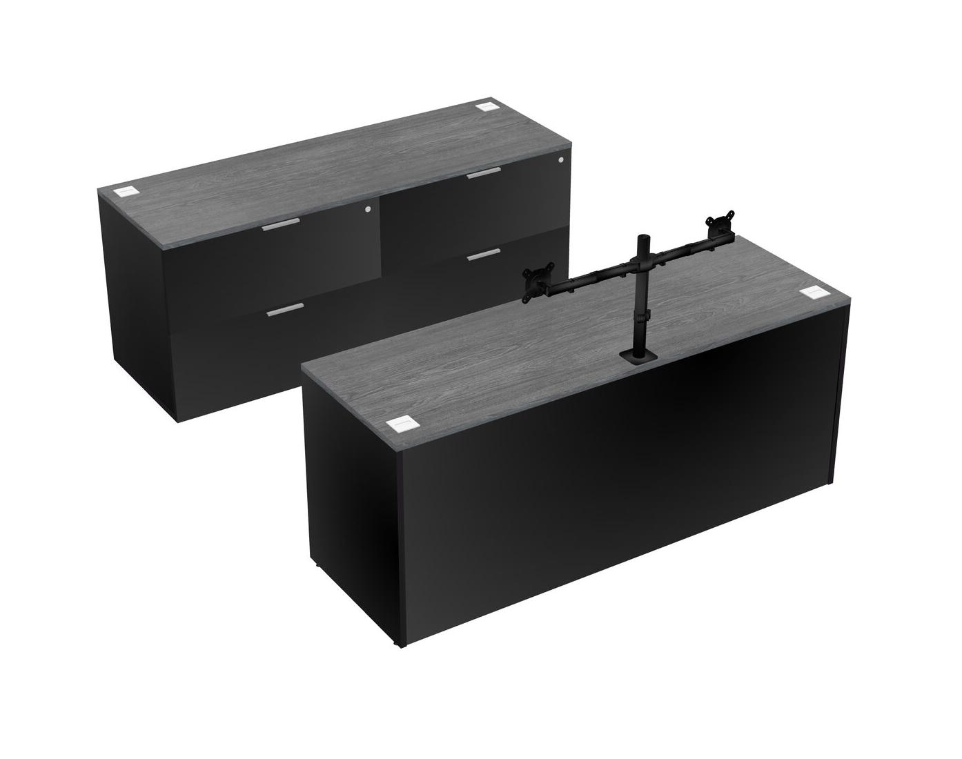 Bureau Parallèle Gris Avec Classeur Latéral, Tiroirs Mobiles En Bois Et Bras D'écran (bras Doubles)