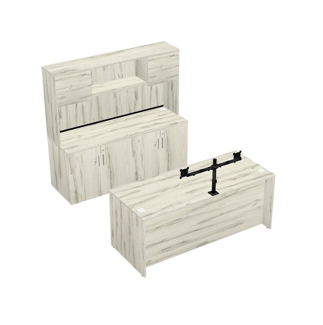 Bureau Parallèle Heinne Holz Avec Armoire De Rangement, Clapier Et Bras D'écran (bras Doubles)