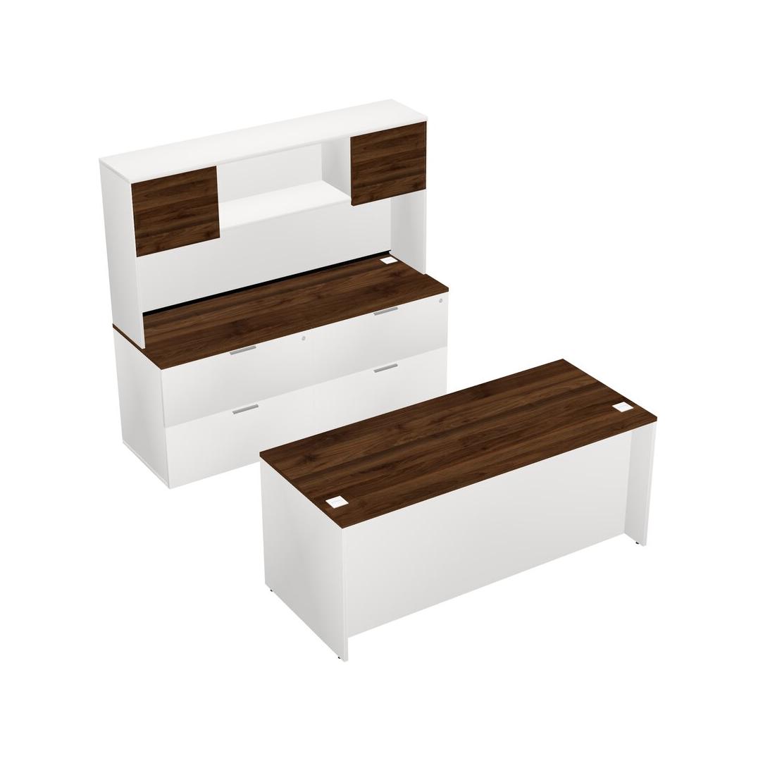 Bureau Parallèle En Noyer Columbia Avec Classeur Latéral, Tiroirs Mobiles En Bois Et Clapier