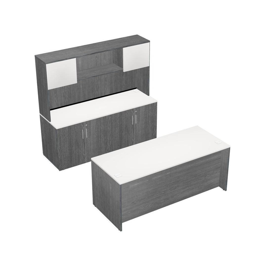 Bureau Parallèle Blanc Avec Armoire De Rangement, Tiroirs Mobiles En Bois Et Clapier