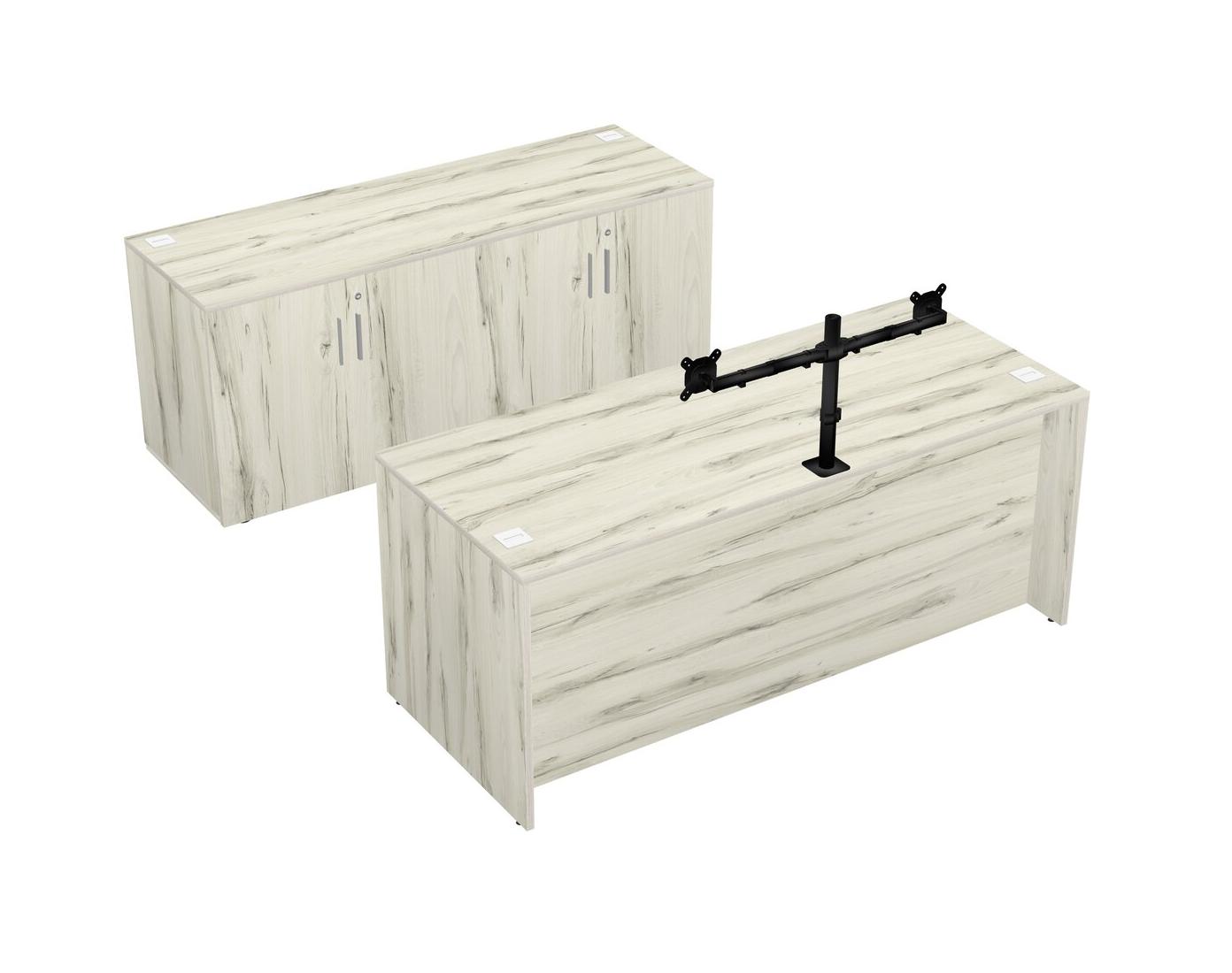 Bureau Parallèle Heinne Holz Avec Armoire De Rangement, Tiroirs Mobiles En Bois Et Bras D'écran (bras Doubles)