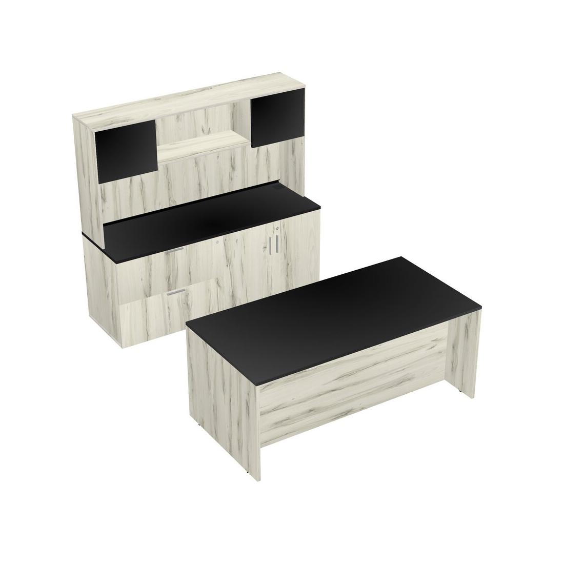 Bureau Parallèle Noir Avec Rangement Latéral Combiné + Tiroirs Mobiles En Bois + Clapier