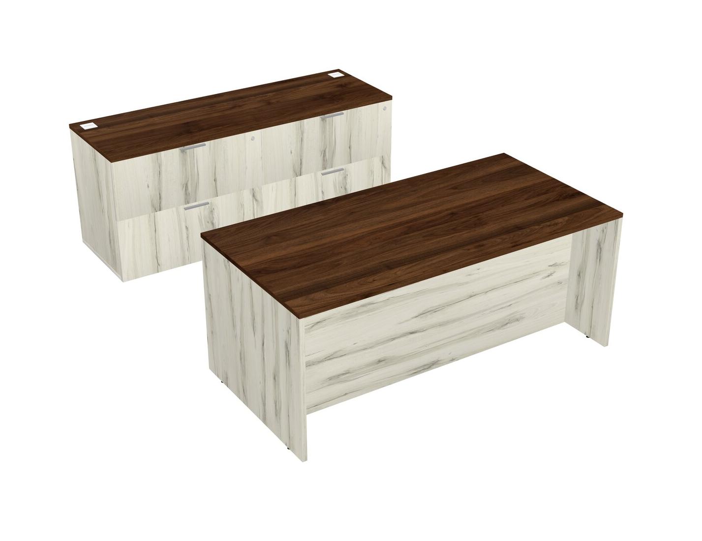 Bureau Parallèle En Noyer Columbia Avec Classeur Latéral Et Tiroirs Mobiles En Bois