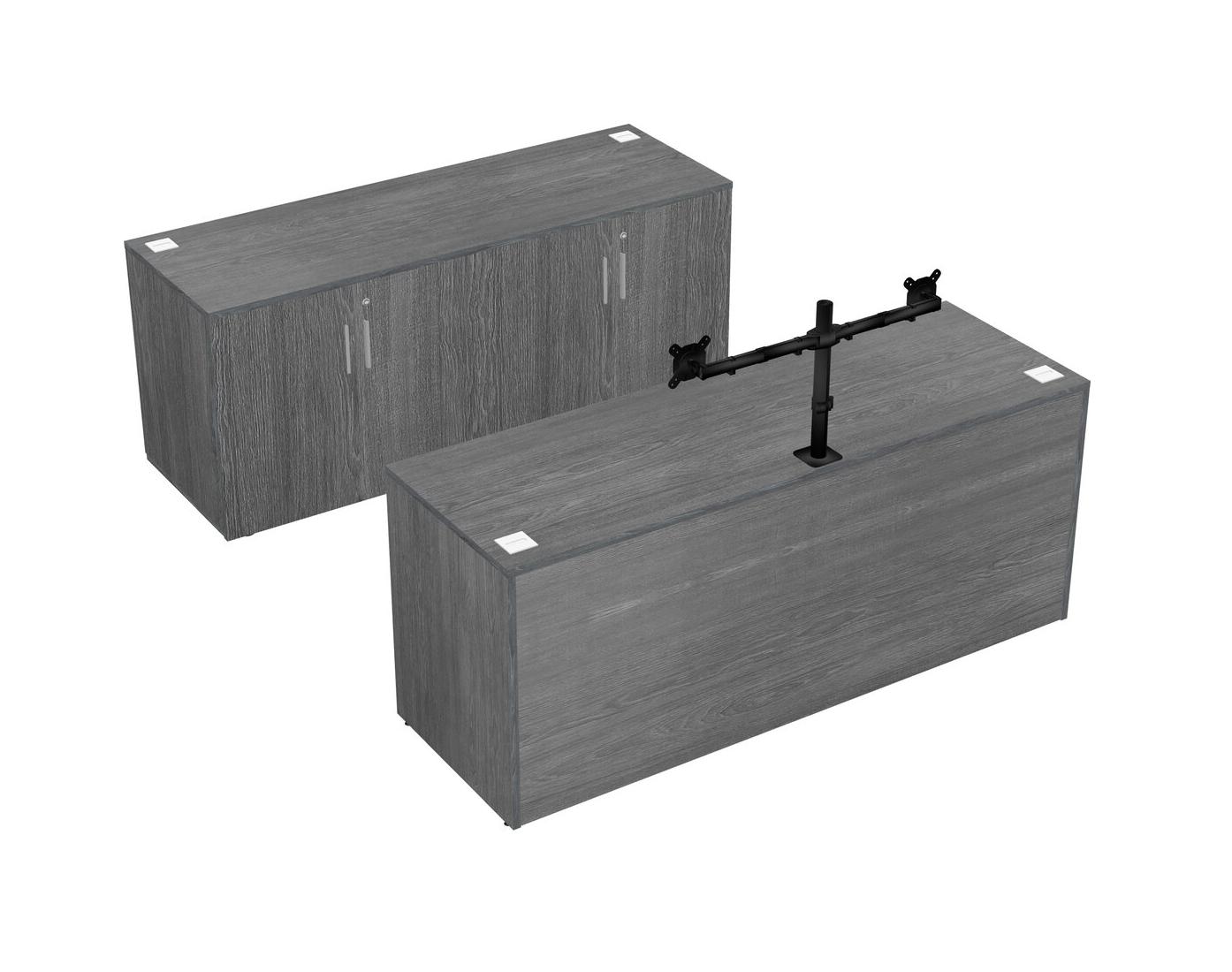 Bureau Parallèle Gris Avec Armoire De Rangement Et Bras Pour écran (bras Doubles)