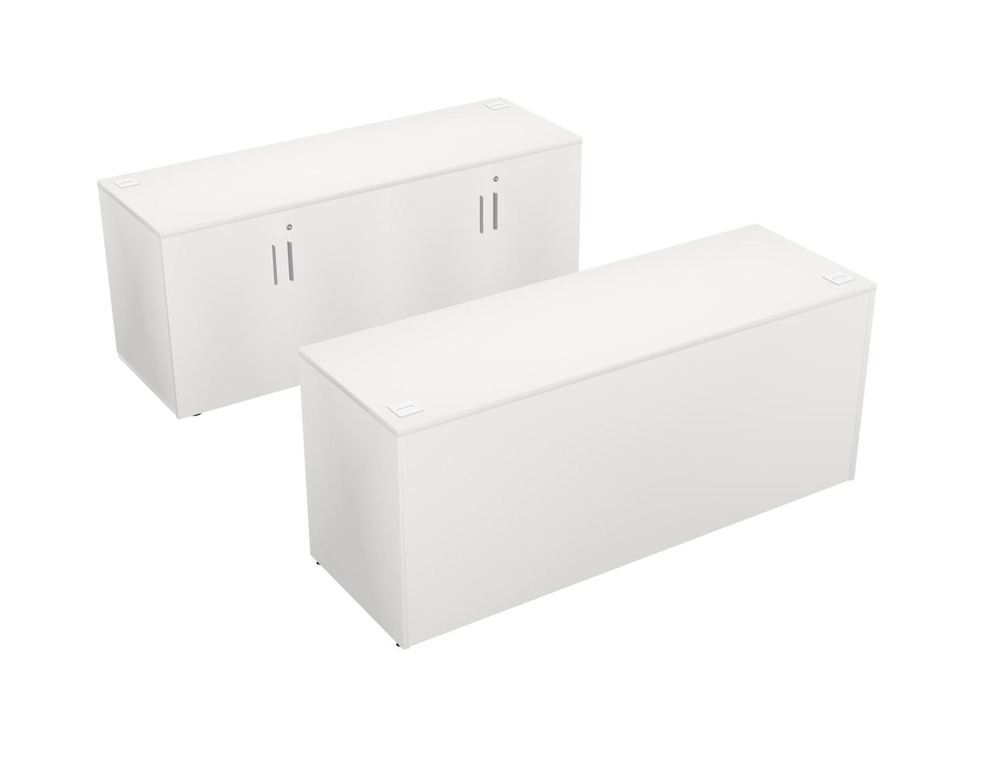 Bureau Parallèle Blanc Avec Armoire De Rangement Et Tiroirs Mobiles En Bois