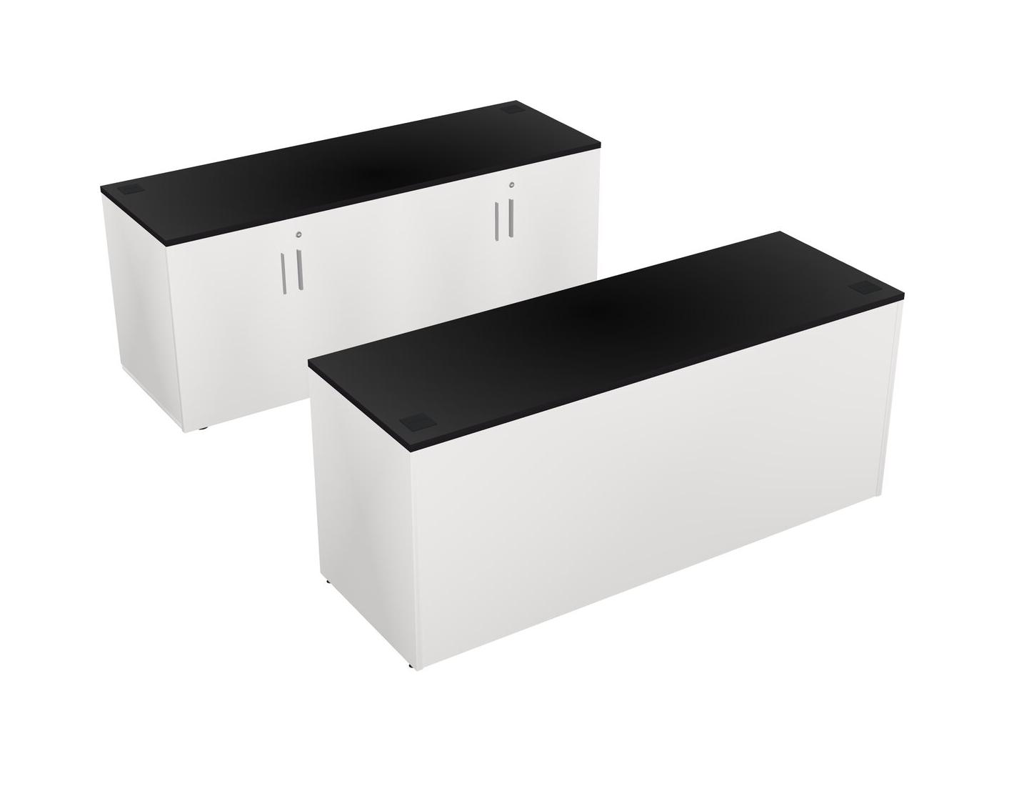 Bureau Parallèle Noir Avec Armoire De Rangement Et Tiroirs Mobiles En Bois