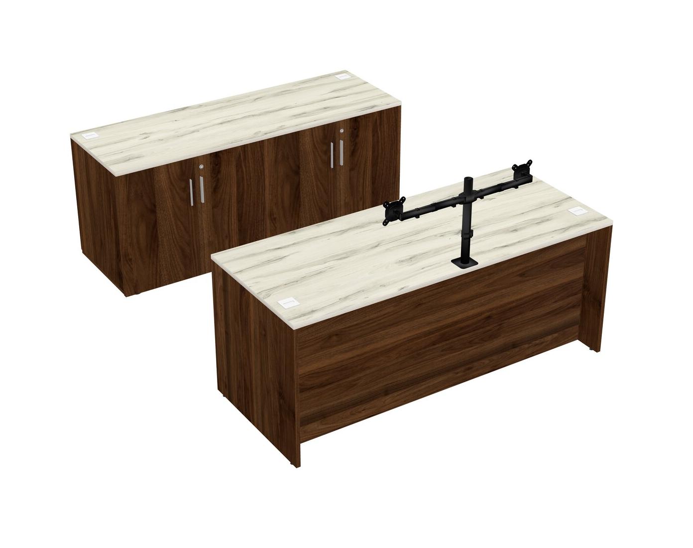 Bureau Parallèle Heinne Holz Avec Armoire De Rangement Et Bras Pour écran (bras Doubles)