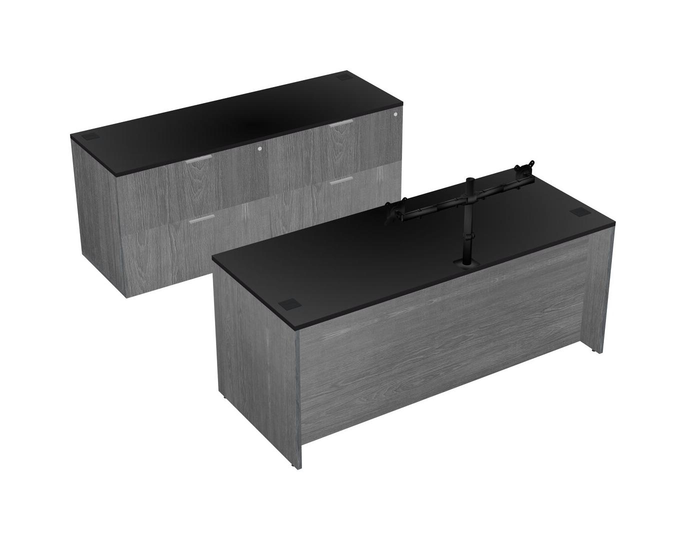 Bureau Parallèle Noir Avec Classeur Latéral Et Bras Pour écran (bras Doubles)