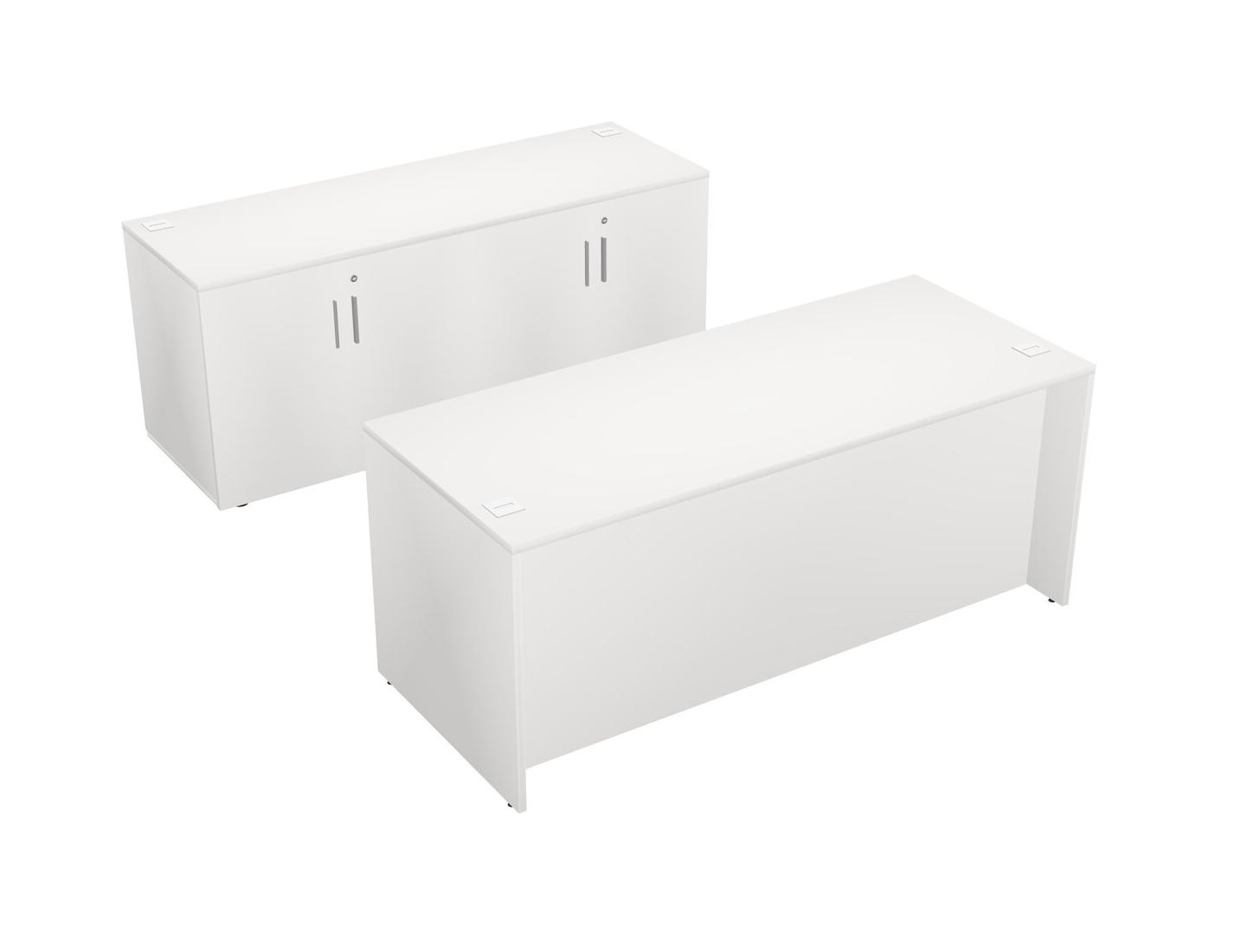 Bureau Parallèle Blanc Avec Armoire De Rangement Et Tiroirs Mobiles En Bois