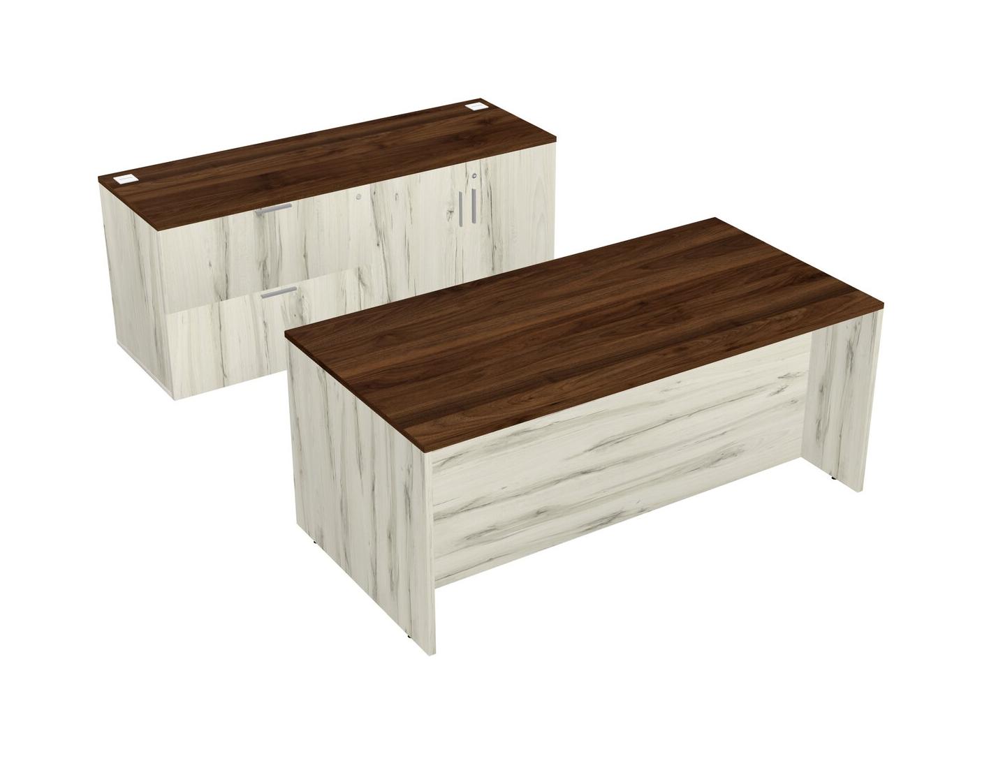 Bureau Parallèle En Noyer Columbia Avec Rangement Latéral Et Tiroirs Mobiles En Bois