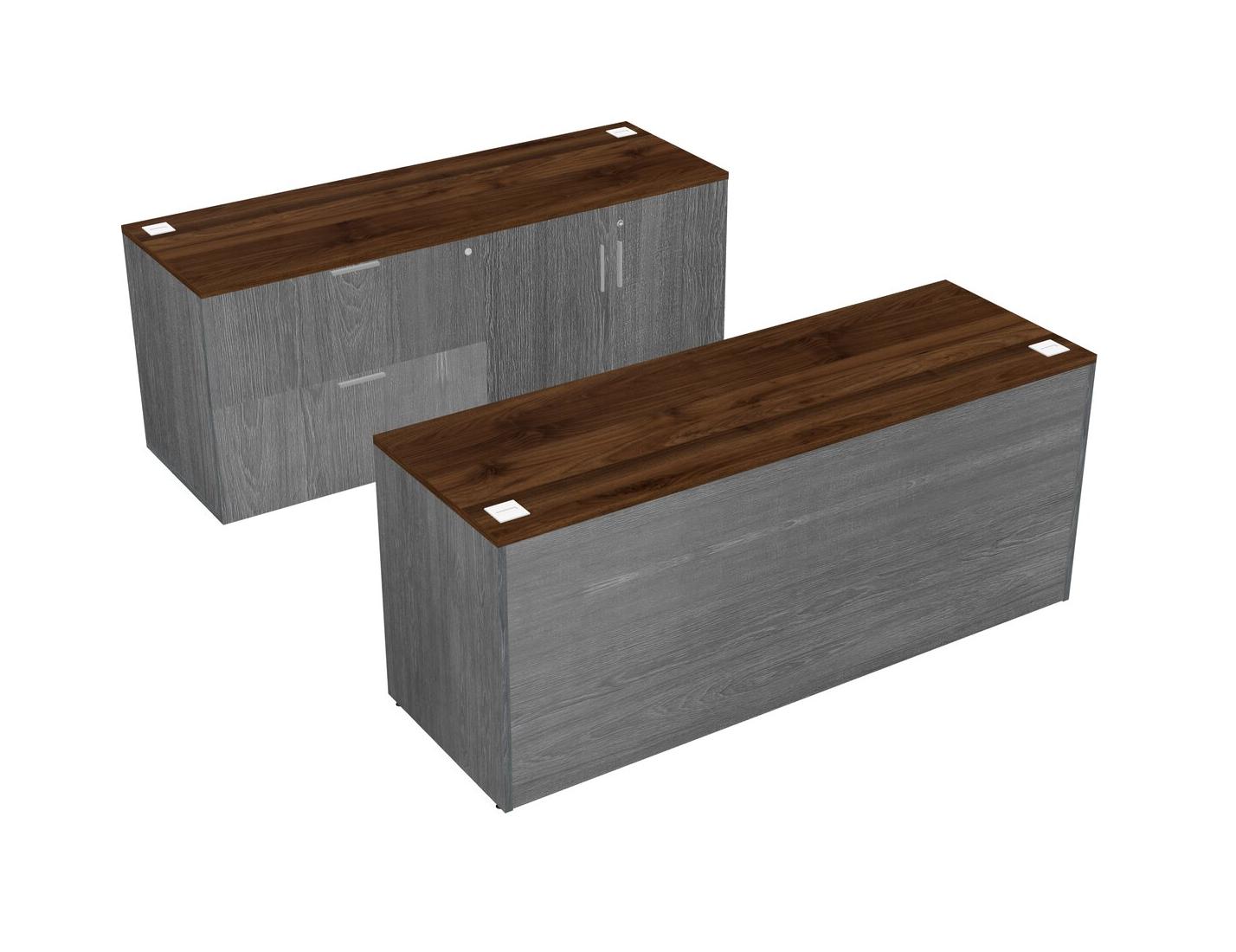 Bureau Parallèle En Noyer Columbia Avec Rangement Latéral Et Tiroirs Mobiles En Bois
