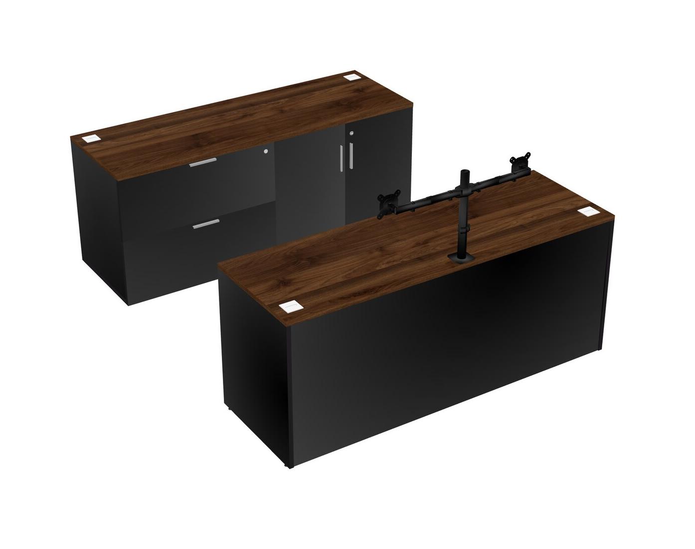 Bureau Parallèle En Noyer Columbia Avec Rangement Latéral Et Bras Pour écran (double Bras)