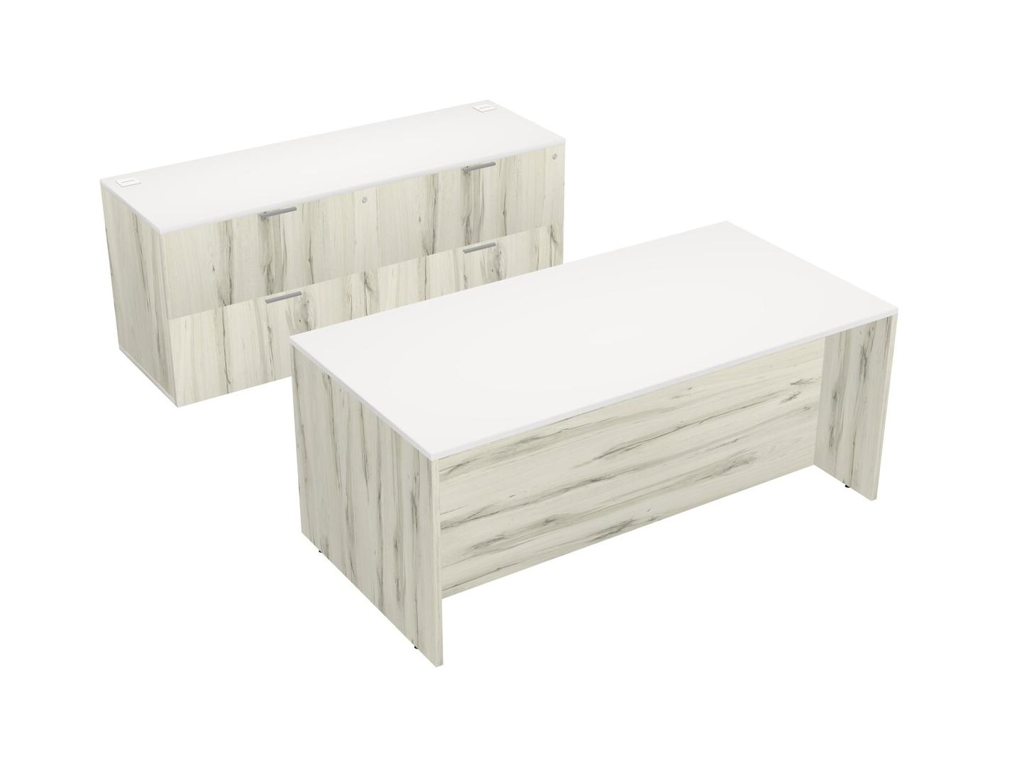 Bureau Parallèle Blanc Avec Classeur Latéral