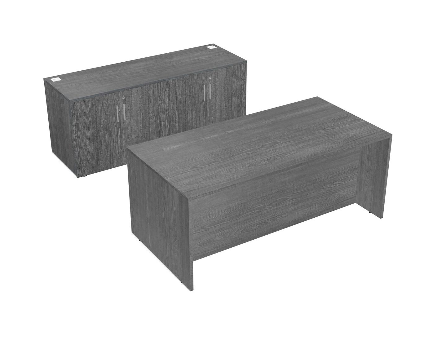 Bureau Parallèle Gris Avec Armoire De Rangement