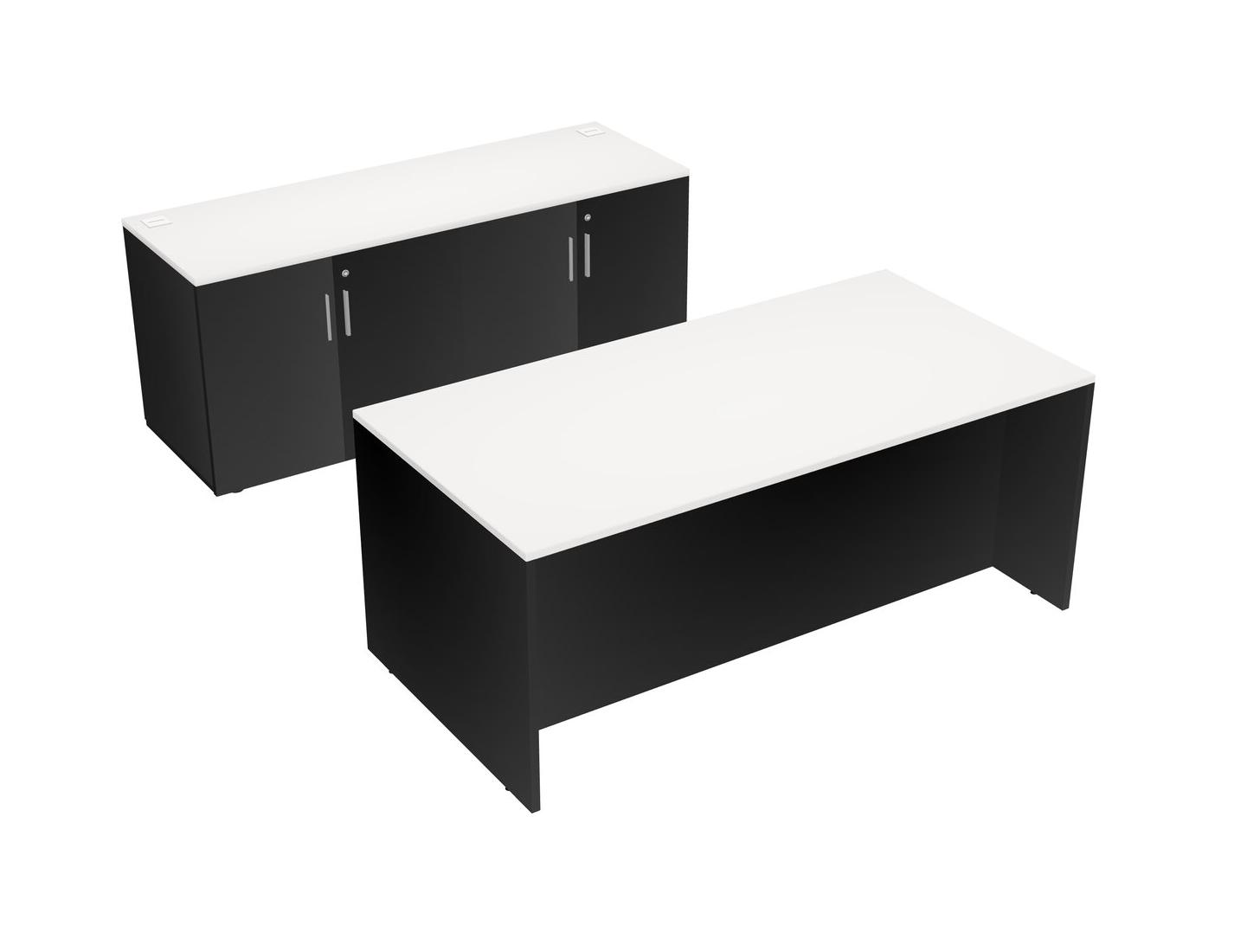 Bureau Parallèle Blanc Avec Armoire De Rangement