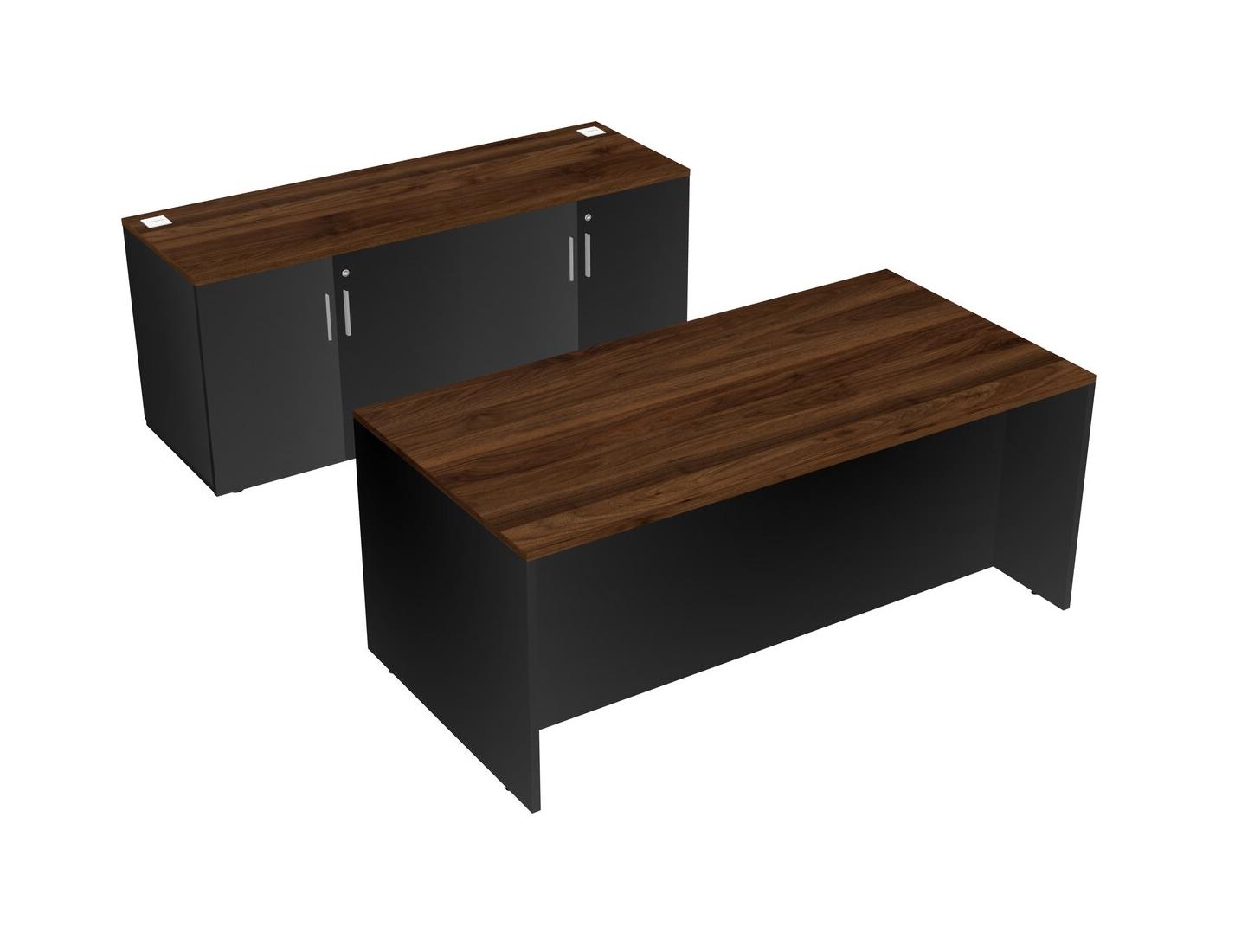 Bureau Parallèle En Noyer Columbia Avec Armoire De Rangement