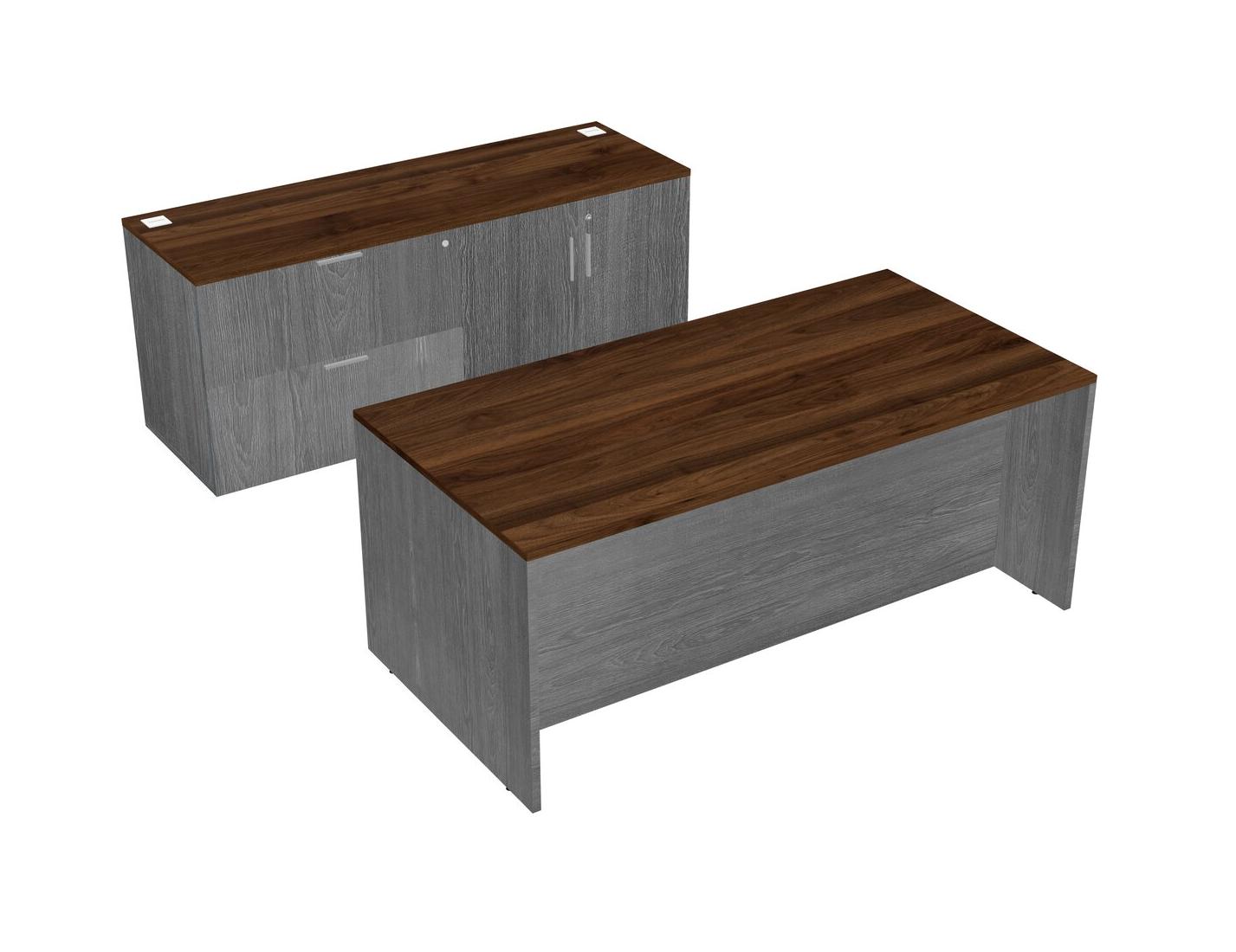 Bureau Parallèle En Noyer Columbia Avec Rangement Latéral