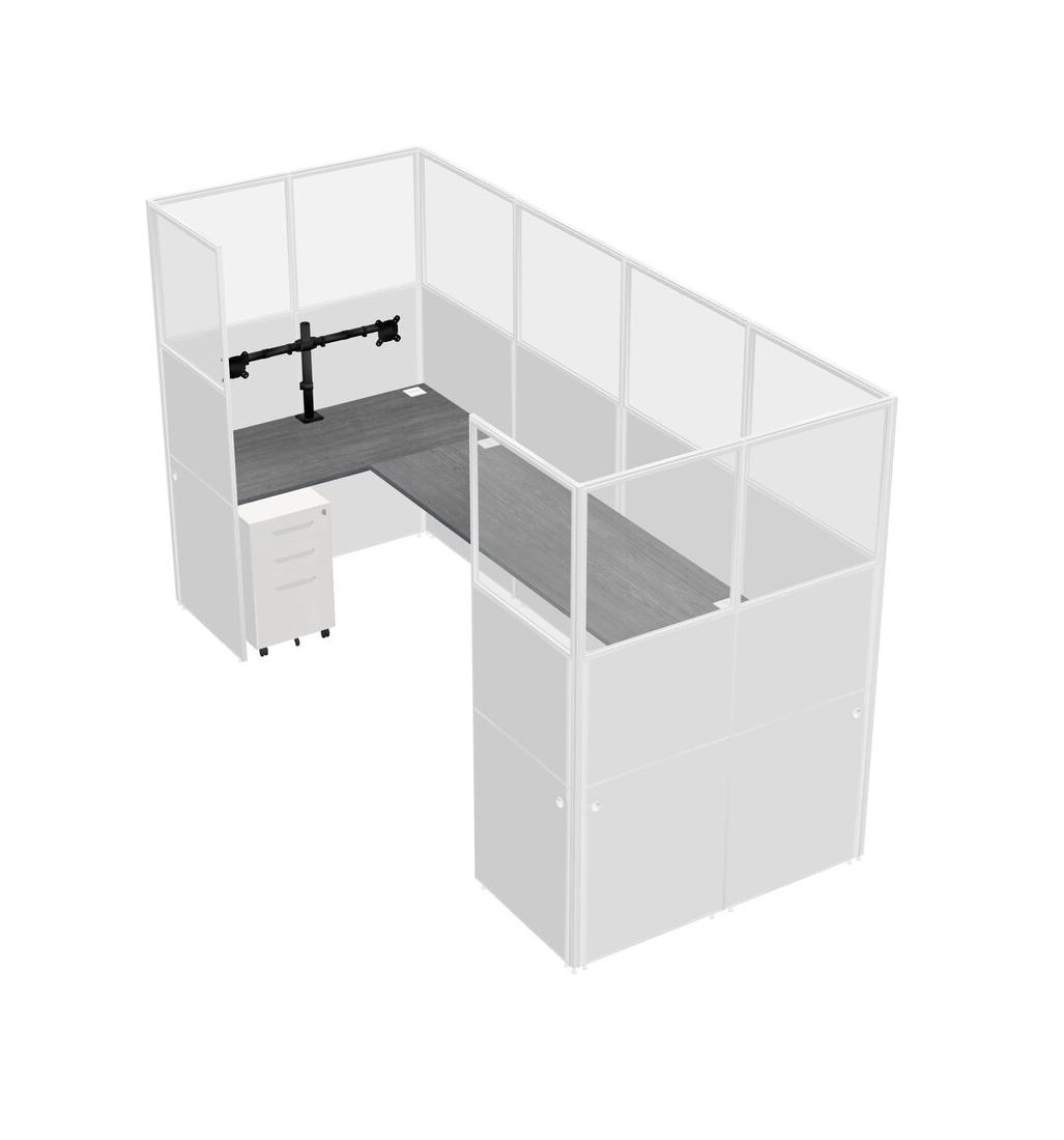 Système De Panneaux En U Gris Pour 1 Personne + Bras D'écran (bras Doubles) + Tiroirs Mobiles En Métal Pour 1 Utilisateur(s)