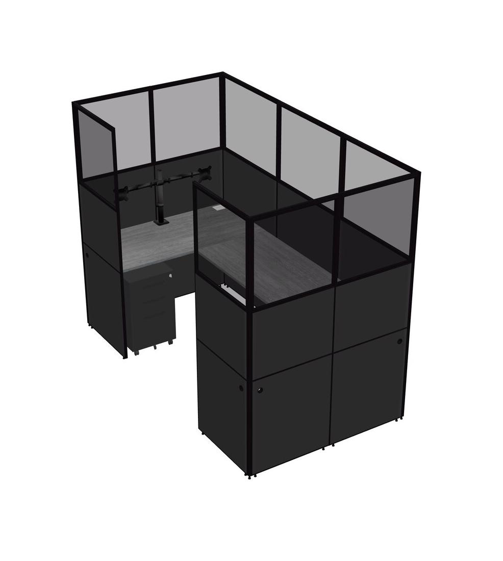 Système De Panneaux En U Gris Pour 1 Personne + Bras D'écran (bras Doubles) + Tiroirs Mobiles En Métal Pour 1 Utilisateur(s)