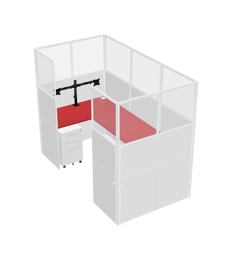 Système De Panneau En U Prism Red Pour 1 Personne + Bras D'écran (bras Doubles) + Tiroirs Mobiles En Métal Pour 1 Utilisateur(s)