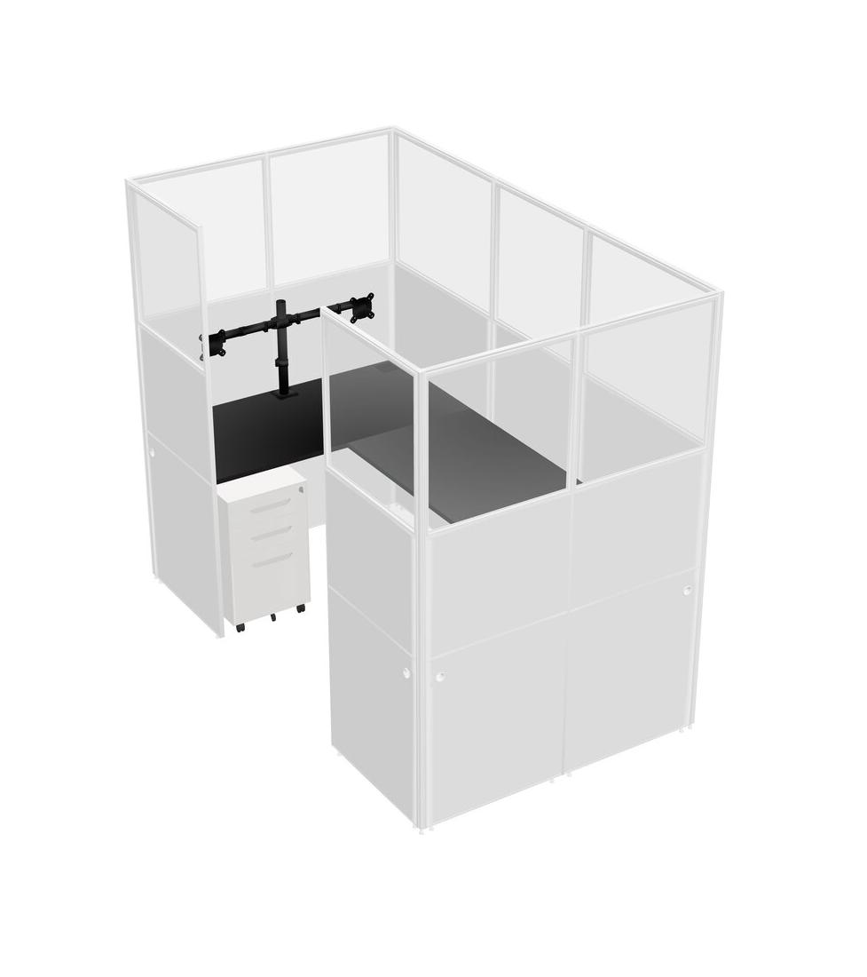 Système De Panneaux En U Noir Pour 1 Personne + Bras D'écran (bras Doubles) + Tiroirs Mobiles En Métal Pour 1 Utilisateur(s)