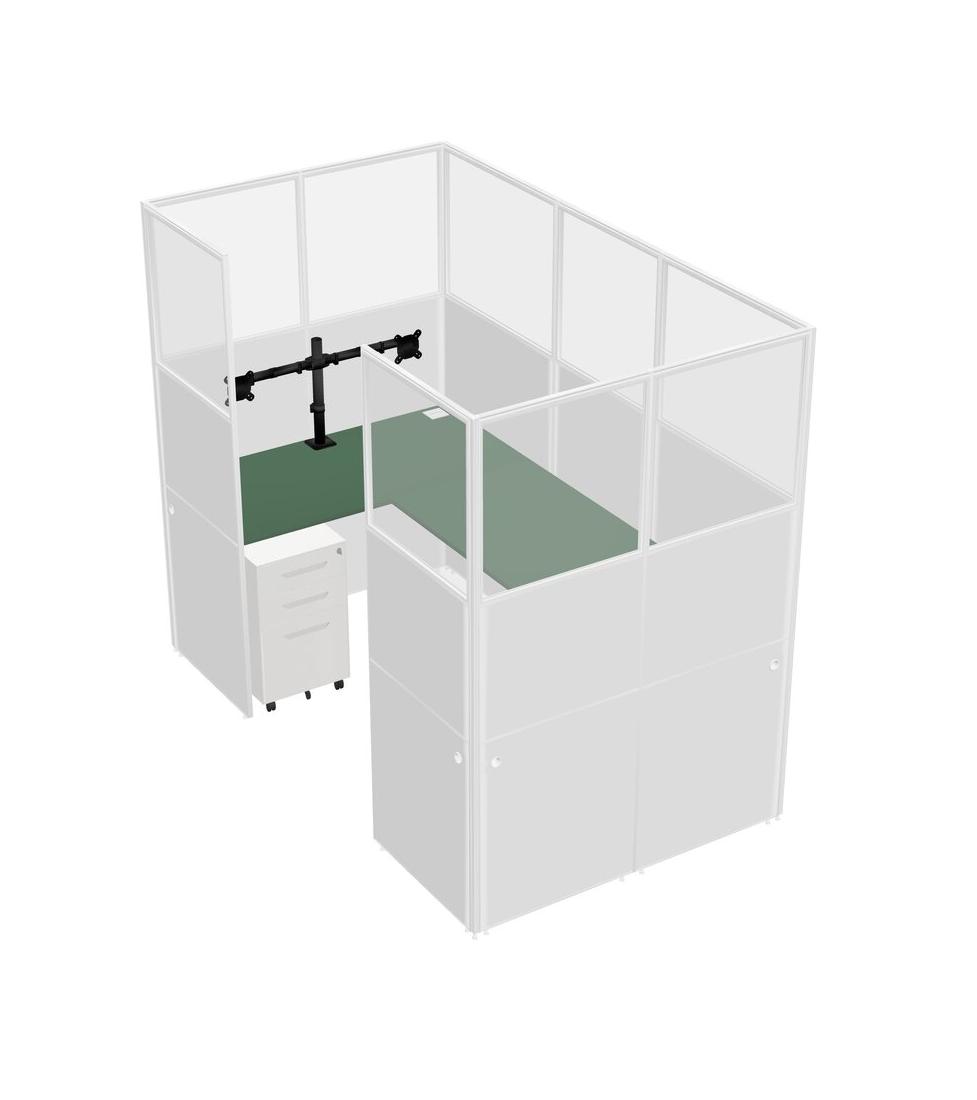 Système De Panneaux Verts En U Pour 1 Personne + Bras D'écran (bras Doubles) + Tiroirs Mobiles En Métal Pour 1 Utilisateur(s)
