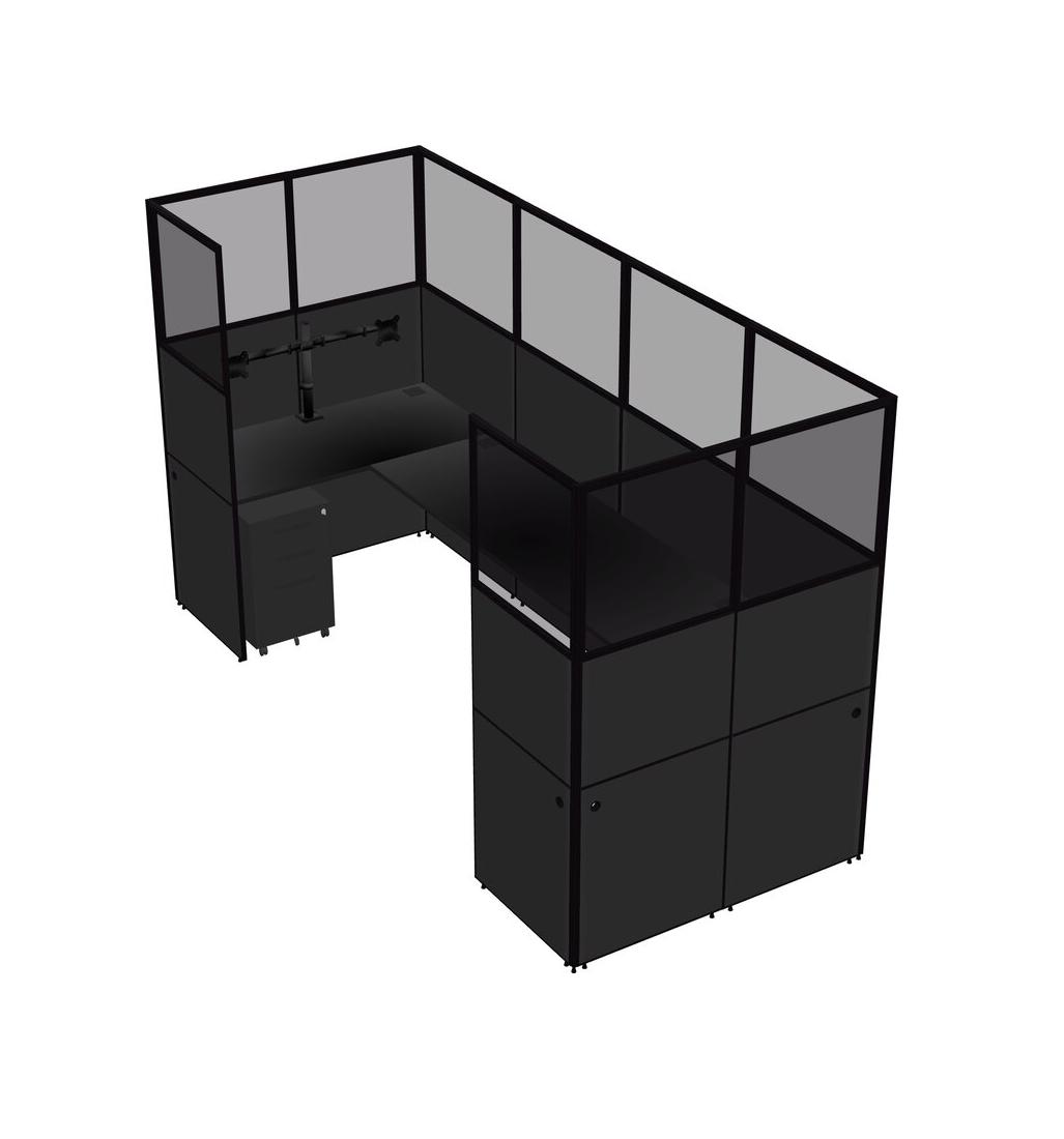 Système De Panneaux En U Noir Pour 1 Personne + Bras D'écran (bras Doubles) + Tiroirs Mobiles En Métal Pour 1 Utilisateur(s)
