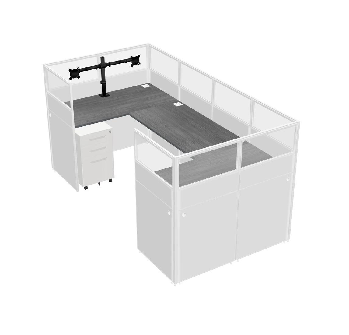 Système De Panneaux En U Gris Pour 1 Personne + Bras D'écran (bras Doubles) + Tiroirs Mobiles En Métal Pour 1 Utilisateur(s)