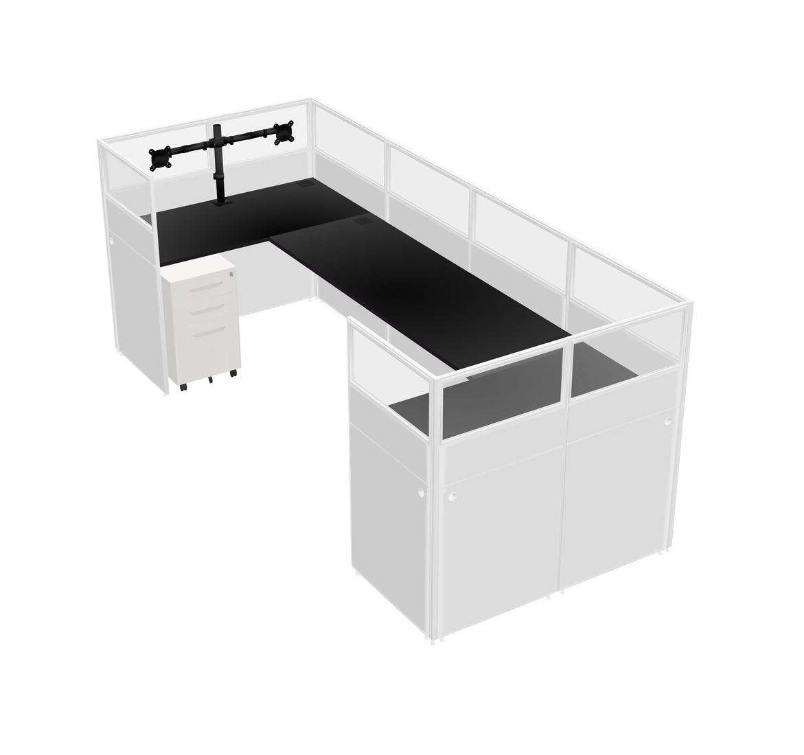 Système De Panneaux En U Noir Pour 1 Personne + Bras D'écran (bras Doubles) + Tiroirs Mobiles En Métal Pour 1 Utilisateur(s)