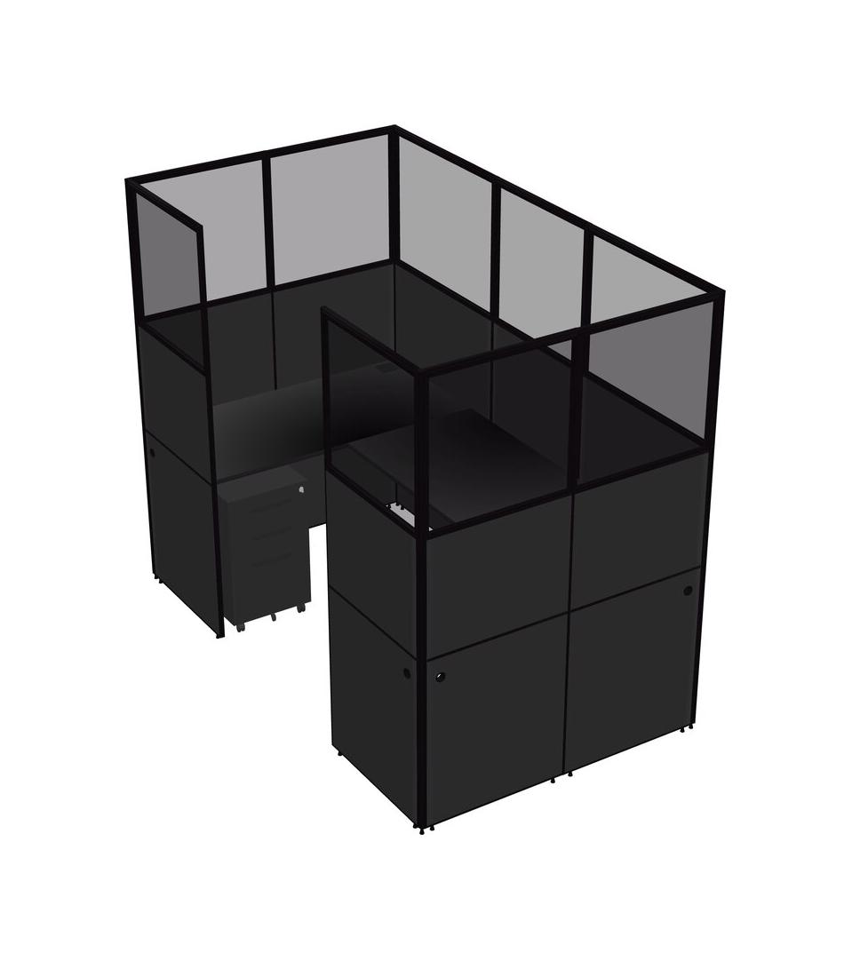 Système De Panneaux En U Noir Pour 1 Personne + Tiroirs Mobiles En Métal Pour 1 Utilisateur(s)