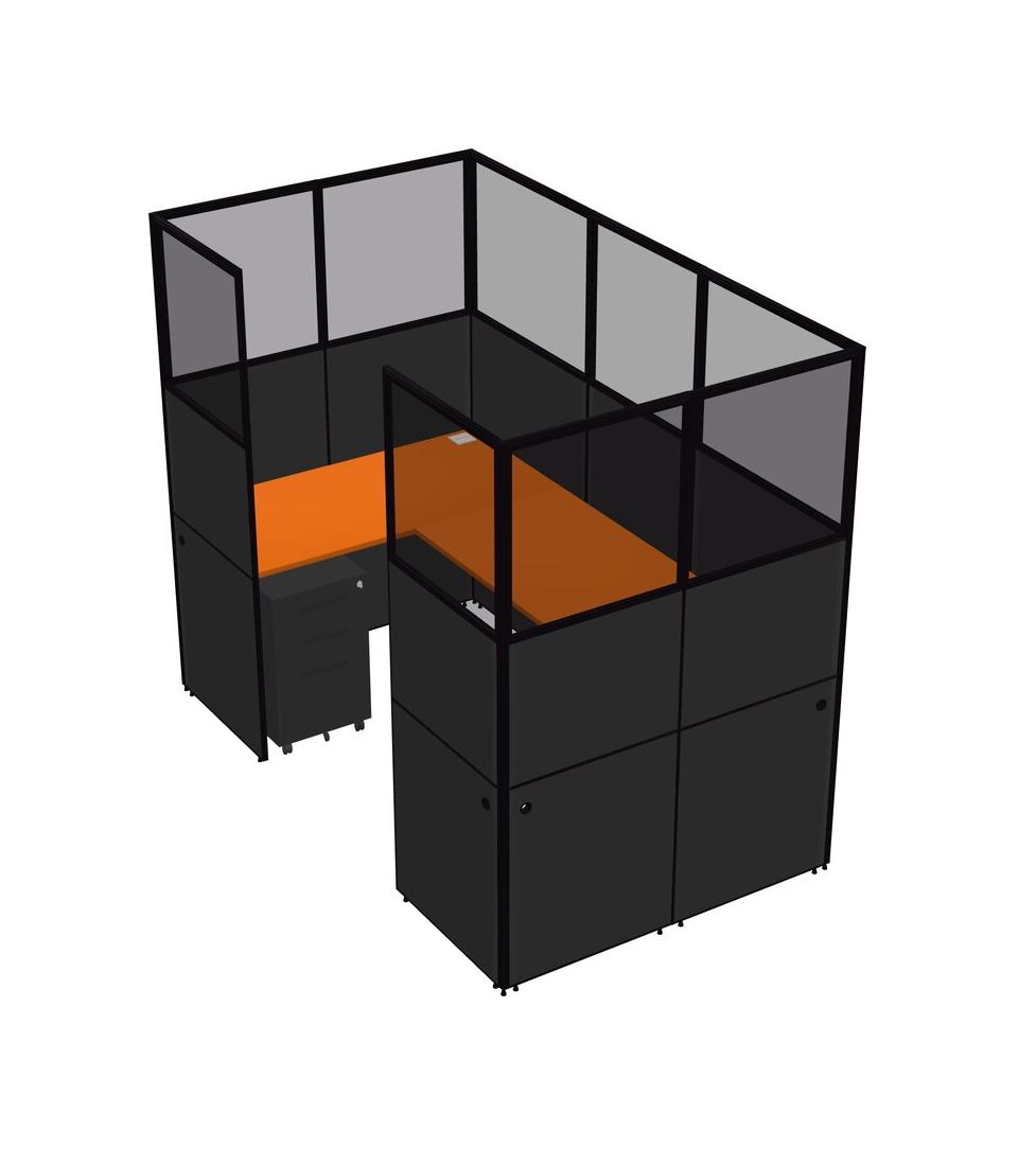 Système De Panneaux En U Orange Pour 1 Personne + Tiroirs Mobiles En Métal Pour 1 Utilisateur(s)