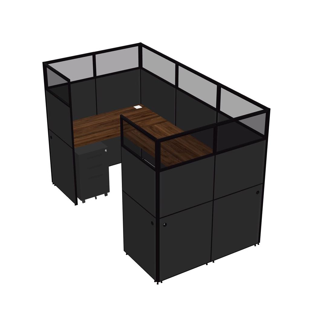Système De Panneaux En U En Noyer Columbia Pour 1 Personne + Tiroirs Mobiles En Métal Pour 1 Utilisateur(s)