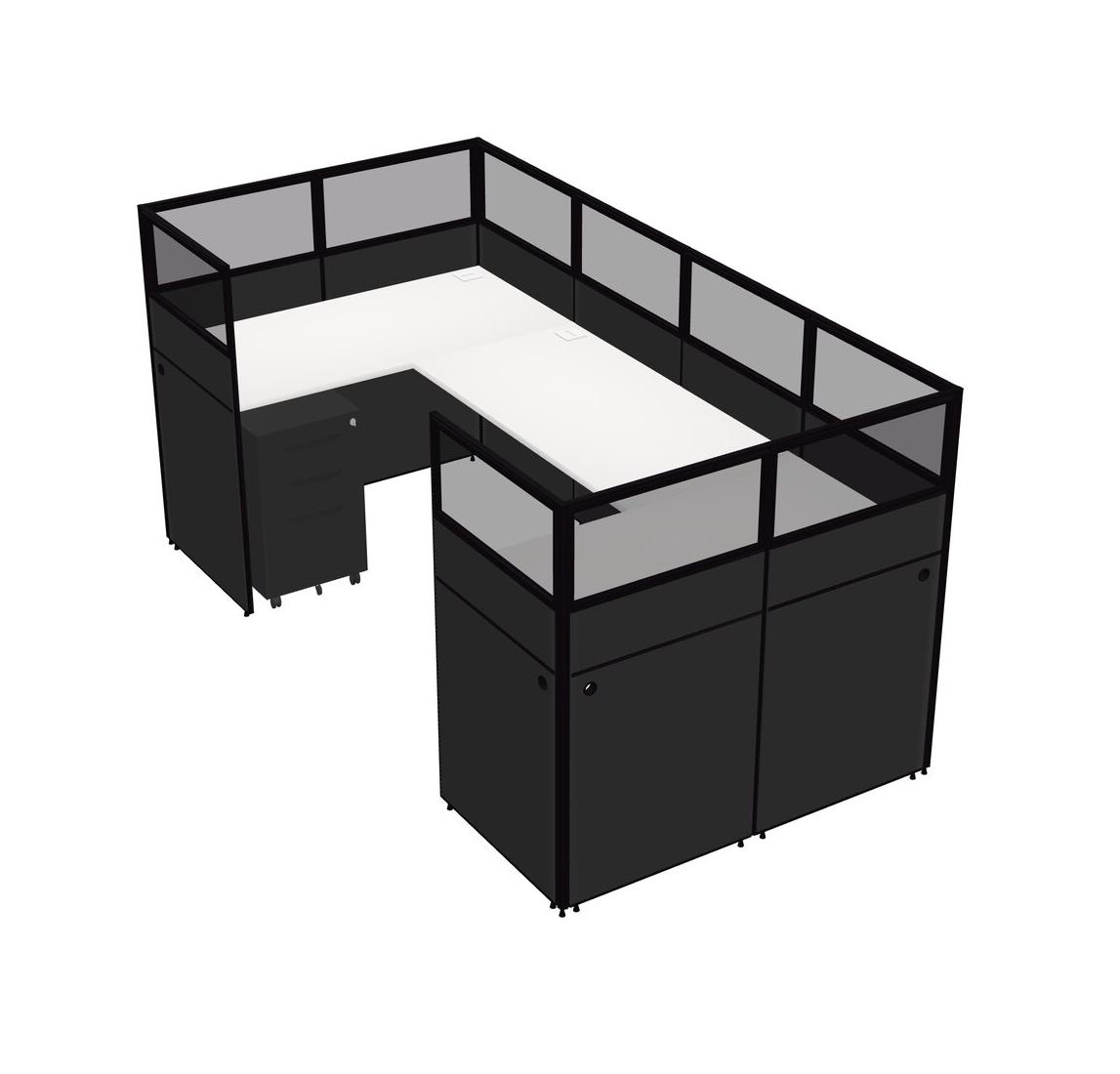 Système De Panneaux Blancs En U Pour 1 Personne + Tiroirs Mobiles En Métal Pour 1 Utilisateur(s)