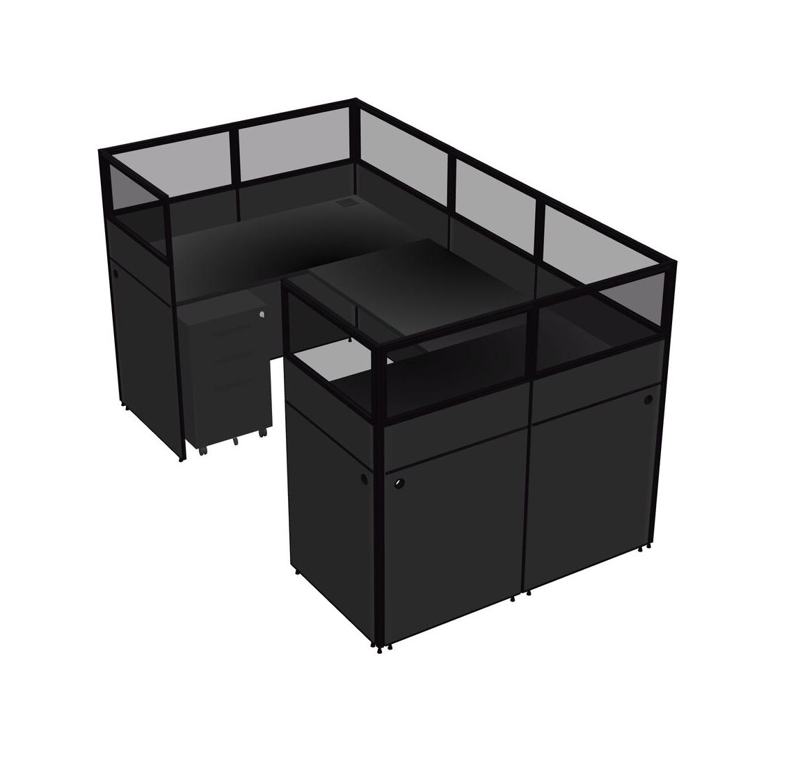 Système De Panneaux En U Noir Pour 1 Personne + Tiroirs Mobiles En Métal Pour 1 Utilisateur(s)